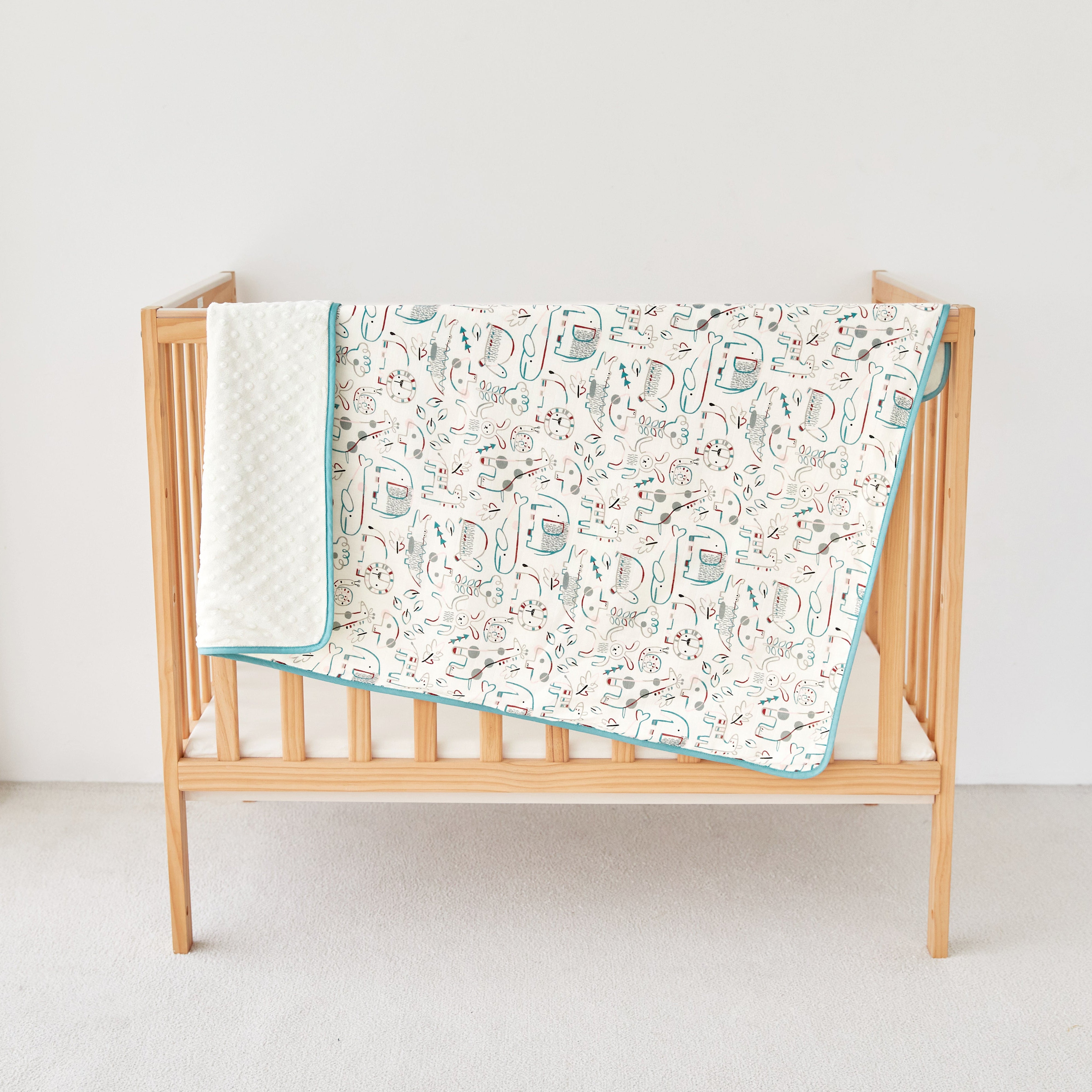 Reversible Adventure Zoo Print 2-Layer Gauze & Minky Baby Blanket (30"x40") | LOA DAISY