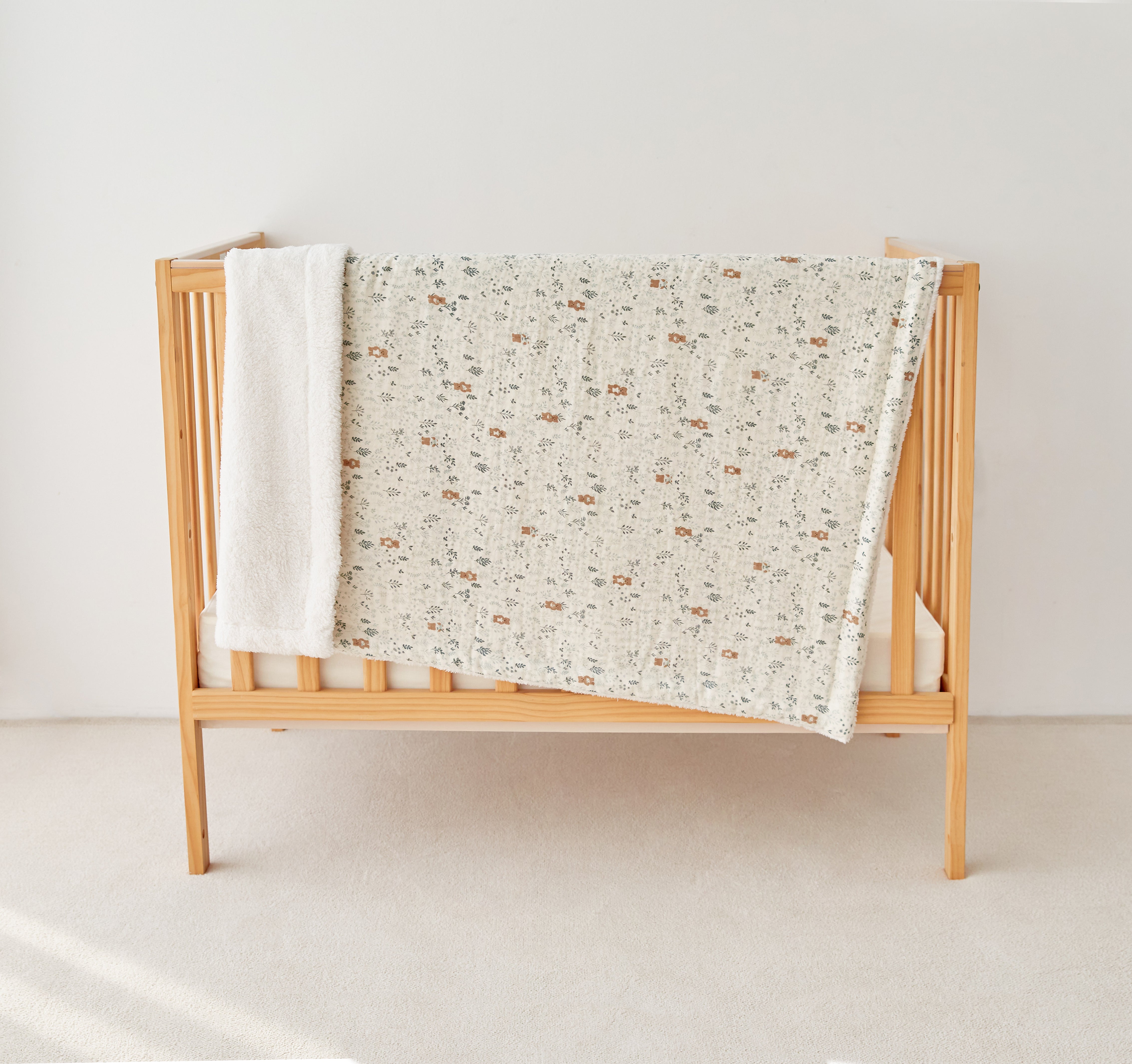 Tiny Bloom Floral Gauze & Sherpa Blanket | Optional Personalization