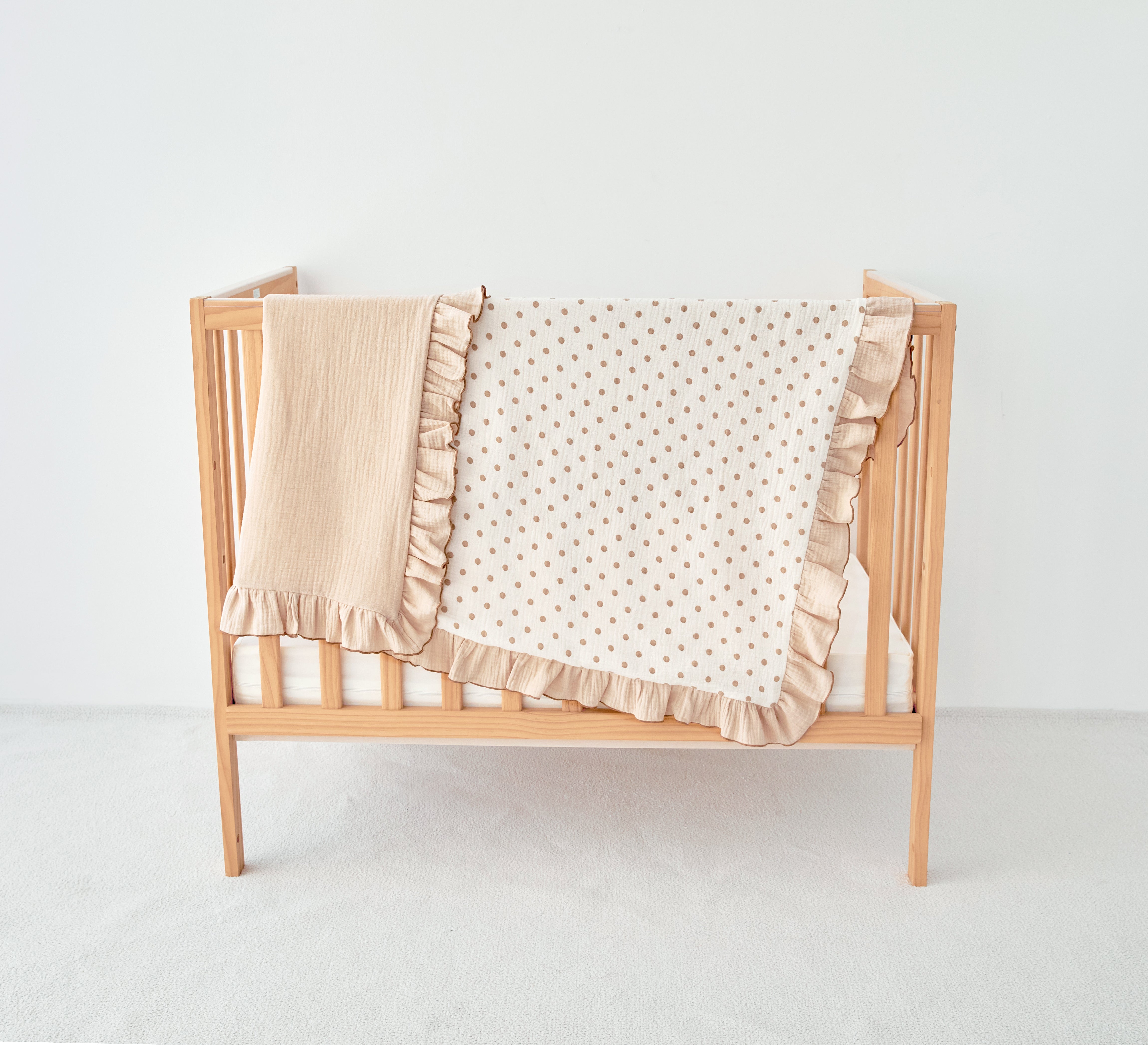 dotted ruffle beige modal gauze blanket for stroller and nap