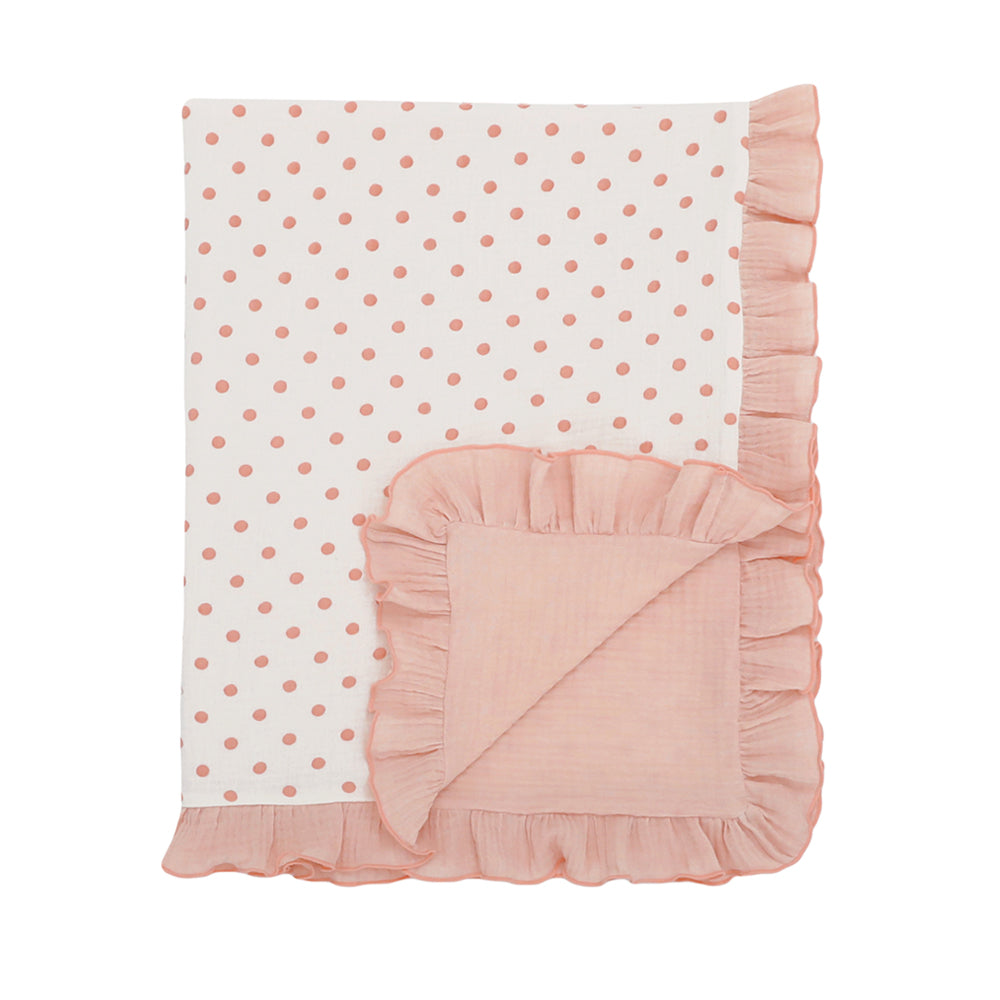Loa Daisy Dotted ruffle baby toddler gauze blankets pink blue beige