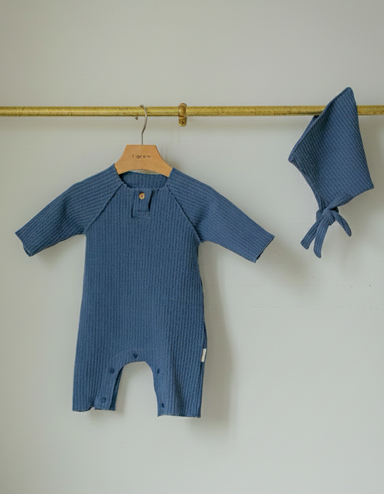 Little Nest Cotton Knit Baby Suit + Bonnet