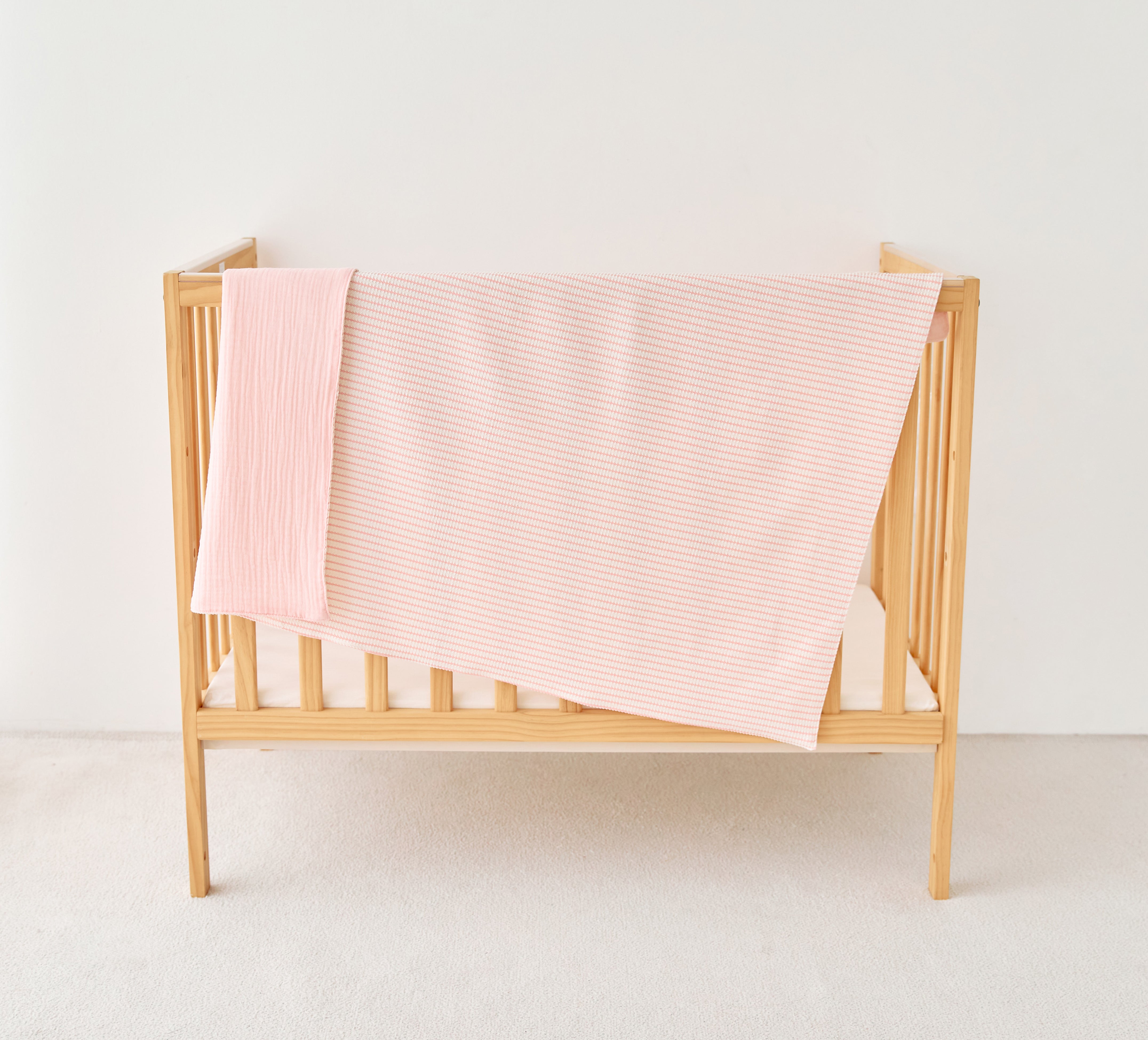 Pink Stripe: Features a sweet Pink Striped Knit front backed with 2 layers of soft Pink Gauze.